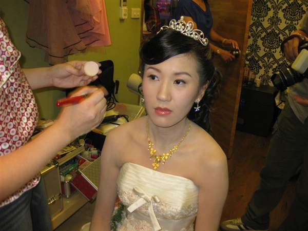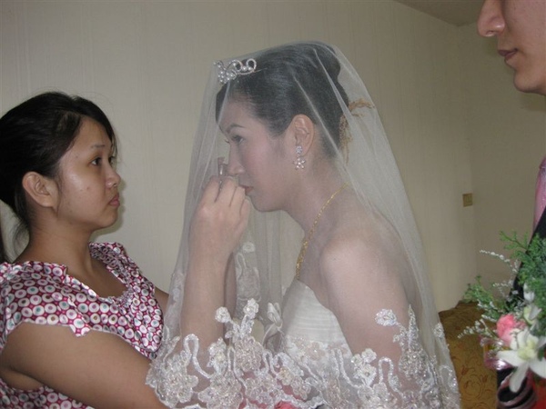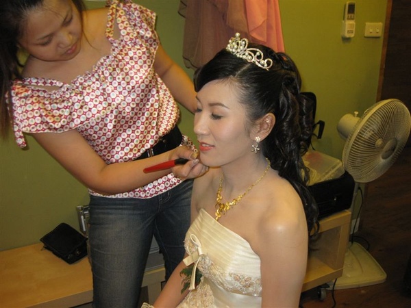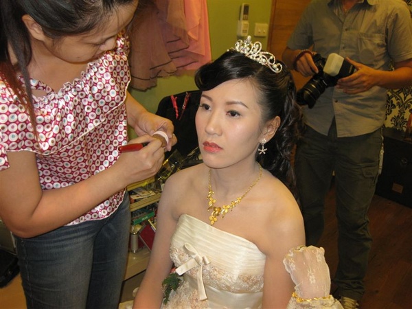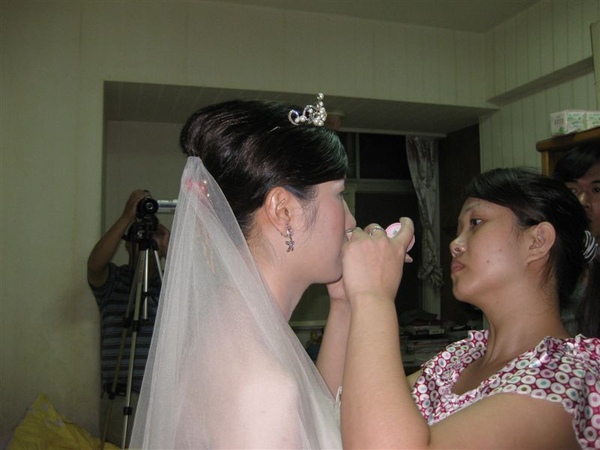 準備要迎娶了哦,再次確認我們梅子的妝是否ok,沛恩老師也再次幫梅子補補腮紅~