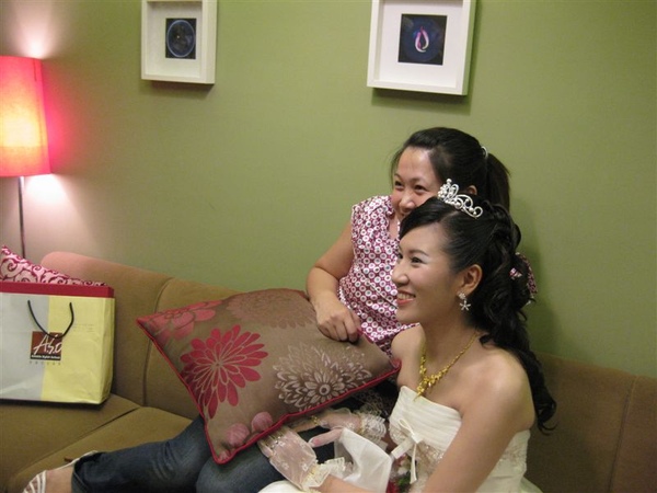 好人緣的梅子,在這中間一直不斷不斷有親友進來新娘房跟梅子合照