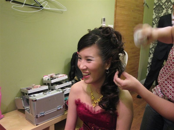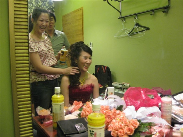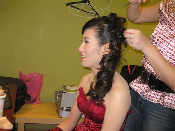 因為gg這天超忙碌,要忙著幫梅子梳髮型,還要忙著幫梅子的伴娘-瑞亭化妝